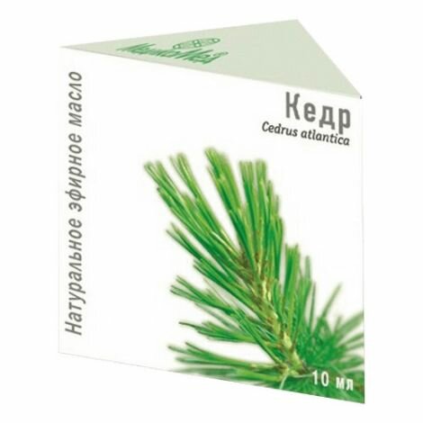 Эфирное масло Кедра - эффективный антисептик, оказывает обезболивающее, противовоспалительное, мочегонное и отхаркивающее действие, способствует выведению шлаков из организма. Является адаптогеном, стабилизирует энергетические нарушения, повышает умственную и физическую активность. Способствует оздоровлению кожи при экземах, дерматозах, импетиго, ожогах, угревой сыпи, раздражении, препятствует появлению перхоти и выпадению волос.