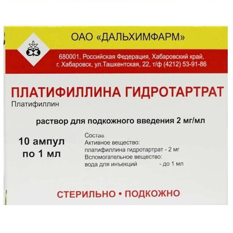 Действующее вещество: платифиллина гидротартрат — 2 мг. Вспомогательное вещество: вода для инъекций — до 1 мл.
