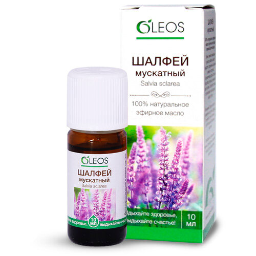 Свежий, сильный, тёплый, пряно-камфорный аромат шалфея мускатного прекрасно балансирует нервную систему, устраняет бессонницу, слабость и депрессию, улучшает память. Повышает умственную и физическую работоспособность. Древние римляне называли его «herba sacra» (священная трава), так как считалось, что шалфей способен спасать людей от болезней и смерти. В косметике используется в составе масляных смесей для снятия раздражения кожи, замедляет процессы преждевременного старения, омолаживает. Является натуральным дезодорантом. Используется для ухода за жирной кожей. Укрепляет и стимулирует рост волос. Используется как репеллент: отпугивает комаров.