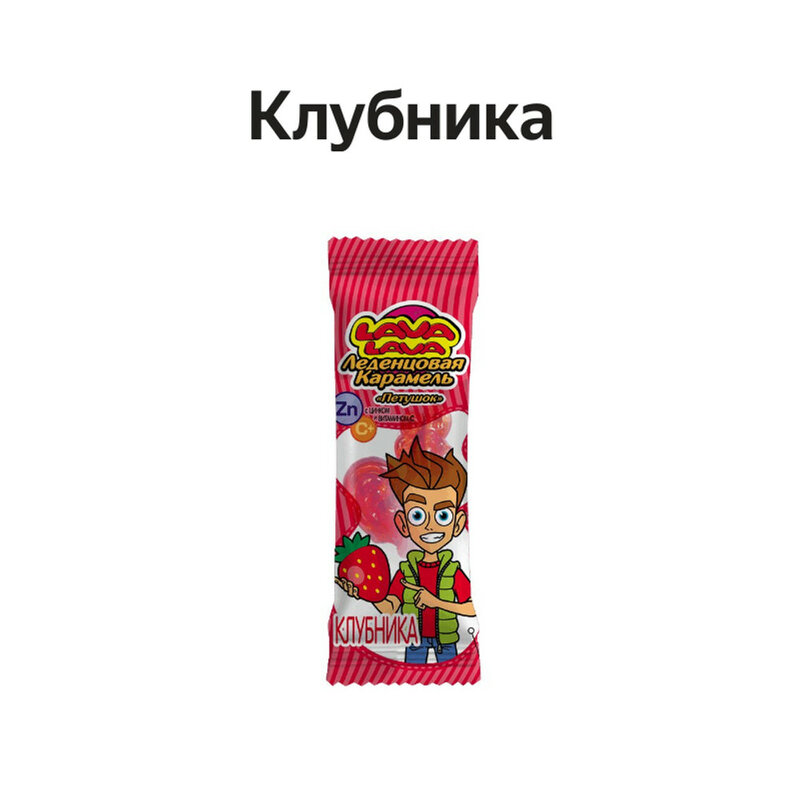 Сахар-песок, патока, кислота аскорбиновая, ароматизатор натуральный клубника, цинка цитрат, краситель красный Е120 кармин.