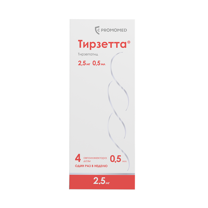 Препарат Тирзетта® содержит действующее вещество тирзепатид, относящееся к группе средств для лечения сахарного диабета; гипогликемические средства, кроме инсулинов; другие гипогликемические средства, кроме инсулинов. Препарат Тирзетта® применяется для лечения сахарного диабета 2 типа (СД2) и ожирения в качестве дополнения к низкокалорийной диете и физической активности. Тирзепатид представляет собой новый класс инкретинов (метаболический гормон, регулирующий уровень инсулина и глюкозы в крови) двойного действия. В клинических исследованиях было показано, что двойное действие тирзепатида обеспечивает его эффективность в отношении снижения массы тела, улучшения обмена веществ и контроля уровня сахара у людей с СД2. Тирзепатид регулирует аппетит, что может помочь Вам потреблять меньше пищи и снизить массу тела. Тирзепатид, улучшая чувствительность к инсулину, снижает повышенный уровень глюкозы в крови, уменьшает массу тела и восстанавливает нормальный липидный профиль. При применении тирзепатида наблюдаются дополнительные эффекты, такие как уменьшение окружности талии, улучшение обмена веществ (уровня липидов, глюкозы и другие), улучшение параметров сердечно-сосудистой системы (артериальное давление, пульс), улучшение функций и состояния печени и почек. Ожирение является серьезным заболеванием, которое увеличивает риск сердечно-сосудистых осложнений. Снижение массы тела на фоне применения тирзепатида способствует уменьшению риска развития различных осложнений, таких как сердечно-сосудистые заболевания, СД2 и другие, и увеличивает продолжительность жизни.