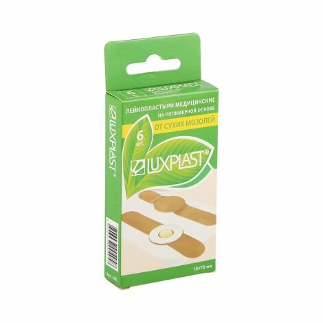 Набор из 6 лейкопластырей на полимерной основе. Обладают антимозольным действием. Полимерная основа защищает рану от влаги. Подушечка снижает давление обуви на мозольную поверхность Гипоаллергенное клеевое покрытие обеспечивает надежную фиксацию лейкопластырей и не раздражает чувствительную кожу. Снимаются без боли и не оставляют следов.