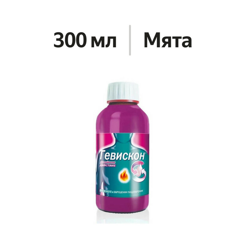 Данный лекарственный препарат является комбинацией алгината и антацидов (кальция карбоната и натрия гидрокарбоната). Фармакодинамика При приеме внутрь действующие вещества препарата Гевискон® Двойное Действие быстро реагируют с кислым содержимым желудка. При этом образуется гель алгината со значением pH, близким к нейтральному. В течение трех минут гель образует защитный барьер на поверхности содержимого желудка, препятствуя возникновению гастроэзофагеального рефлюкса (обратному забросу содержимого желудка в пищевод) на период до четырех часов. В тяжелых случаях рефлюкса (регургитации), гель попадает в пищевод, опережая остальное желудочное содержимое, где он уменьшает раздражение слизистой оболочки пищевода. Кальция карбонат быстро нейтрализует соляную кислоту желудочного сока, облегчая ощущение изжоги. Этот эффект усиливается благодаря наличию в составе препарата натрия гидрокарбоната, который также обладает нейтрализующим действием. Общая кислотонейтрализующая активность препарата в минимальной дозе 10 мл составляет приблизительно 10 мЭкв.