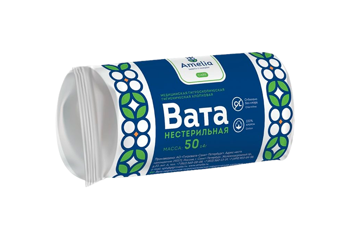 Вата Amelia медицинская хирургическая нестерильная 50 г