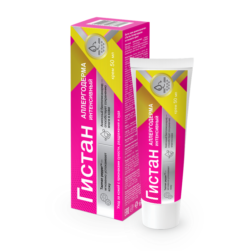Гистан Аллергодерма крем интенсивный содержит tazman pepper, который наделен свойствами оказывать мгновенное успокаивающее действие на раздраженную кожу, уменьшать ощущения жжения, зуда и проявлений покраснения кожи. Масло ореха макадамии, богатое витаминами А, D, Е, F, микро- и макроэлементами, ценными жирными кислотами и фитостеролами, масло какао, содержащее витамины РР и В2, аллантоин и Д-пантенол с доказанной эффективностью обеспечивают интенсивное увлажнение и питание склонной к сухости кожи, помогают восстановить защитный барьер кожи и тем самым не позволяют раздражителям разной природы и аллергенам проникнуть в глубокие слои эпидермиса.