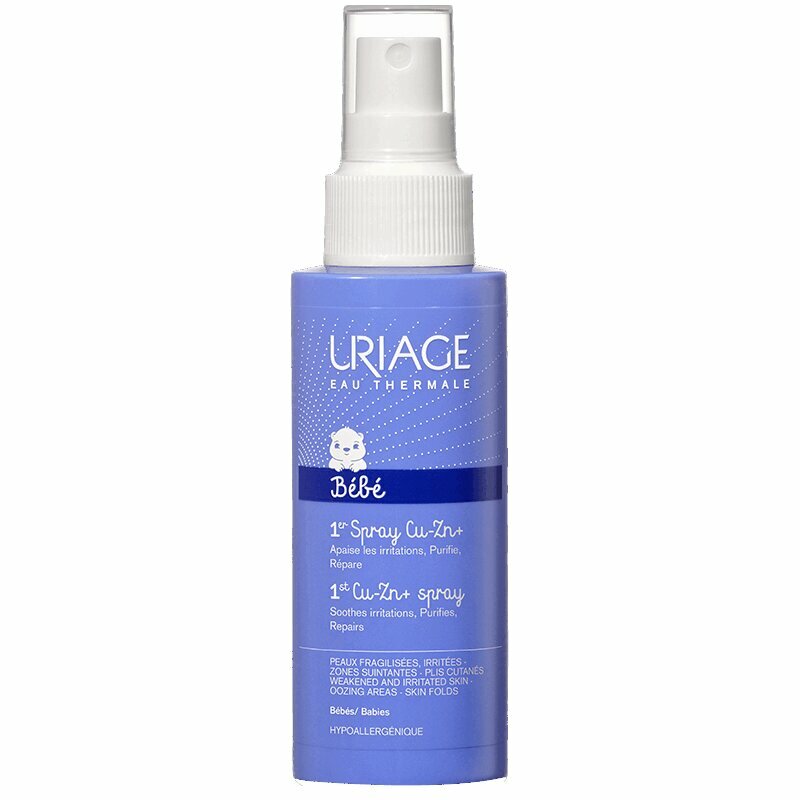 Спрей Cu-Zn Spray Uriage предназначен для специфического ухода за кожей взрослых и детей, склонной к раздражениям – опрелостям и постоянно мокнущим участкам.