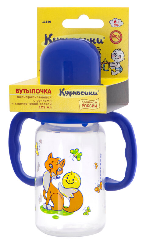 Бутылочка Курносики с ручками и силиконовой соской с 6 месяцев колобок арт.11140 125 мл
