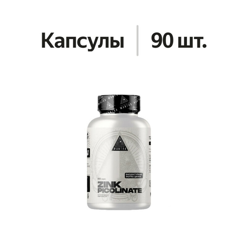 Mantra Цинка пиколинат - биологически активная добавка, поддерживающая иммунную систему и улучшающая состояние кожи, волос и ногтей. Пиколинат наиболее усваиваемая форма цинка для поддержки здоровья организма.