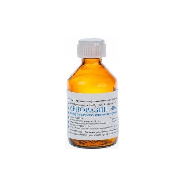 Действующие вещества: Левоментол (L - ментол) - 2,5 г, Прокаина гидрохлорид (Новокаина гидрохлорид) - 1,0 г, Бензокаин (Анестезин) - 1,0 г. Вспомогательное вещество: Спирт этиловый (этанол) 70 % - до 100 мл.