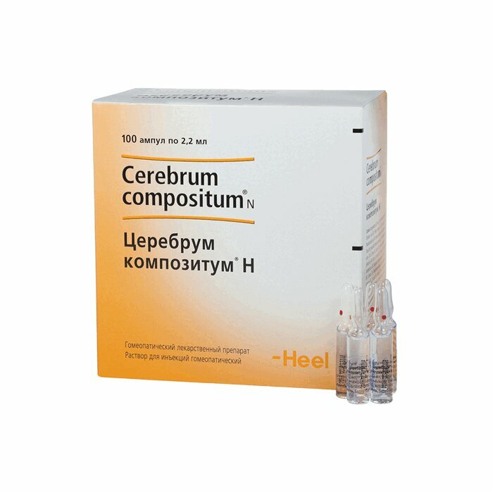 Активные компоненты: Cerebrum suis (церебрум суис) D8 22 мкл, Embryo totalis suis (эмбрио тоталис суис) D10 22 мкл, Hepar suis (гепар суис) D10 22 мкл, Placenta totalis suis (плацента тоталис суис) D10 22 мкл, Kalium phosphoricum (калиум фосфорикум) D6 22 мкл, Selenium (селениум) D10 22 мкл, Thuja occidentalis (туя окциденталис) D6 22 мкл, Strychnos ignatii (стрихнос игнатии) D8 22 мкл, Bothrops lanceolatus (ботропс ланцеолятус) D10 22 мкл, Acidum phosphoricum (ацидум фосфорикум) D10 22 мкл, Cinchona pubescens (цинхона пубесценс) D4 22 мкл, Sulfur (сульфур) D10 22 мкл, Kalium bichromicum (калиум бихромикум) D8 22 мкл, Gelsemium sempervirens (гельсемиум семпервиренс) D4 22 мкл, Ruta graveolens (рута гравеоленс) D4 22 мкл, Arnica montana (арника монтана) D28 22 мкл, Aesculus hippocastanum (эскулюс гиппокаштанум) D4 22 мкл, Manganum phosphoricum (манганум фосфорикум) D8 22 мкл, Magnesium phosphoricum (магнезиум фосфорикум) D10 22 мкл, Semecarpus anacardium (семекарпус анакардиум) D6 22 мкл, Conium maculatum (кониум макулятум) D4 22 мкл, Medorrhinum-Nosode (медорринум-нозоде) D13 22 мкл, Hyoscyamus niger (гиосциамус нигер) D6 22 мкл, Aconitum napellus (аконитум напеллус) D6 22 мкл, Anamirta cocculus (анамирта коккулюс) D4 22 мкл, Ambra grisea (амбра гризея) D10 22 мкл. Вспомогательные вещества: натрия хлорид - q.s. (для установления изотонии) около 9 мг/мл, вода для инъекций - до 2.2 мл.