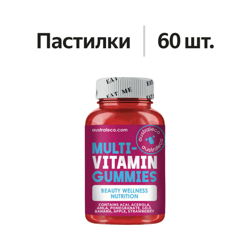 Сироп глюкозы, вода, пектин (загуститель), сахар, порошки смеси фруктов (асая, ацерола, амла, гранат, ягоды годжи, банан, яблоко, клубника), L-аскорбиновая кислота (витамин С), натуральный ароматизатор (Фруктовый), цитрат натрия (регулятор кислотности), лимонная кислота (регулятор кислотности), молочная кислота (регулятор кислотности), кокосовое масло, экстракт бамбука, цитрат цинка, D-альфа- токоферол ацетат (витамин E), ретинол пальмитат (витамин А), карнаубский воск (глазирователь).