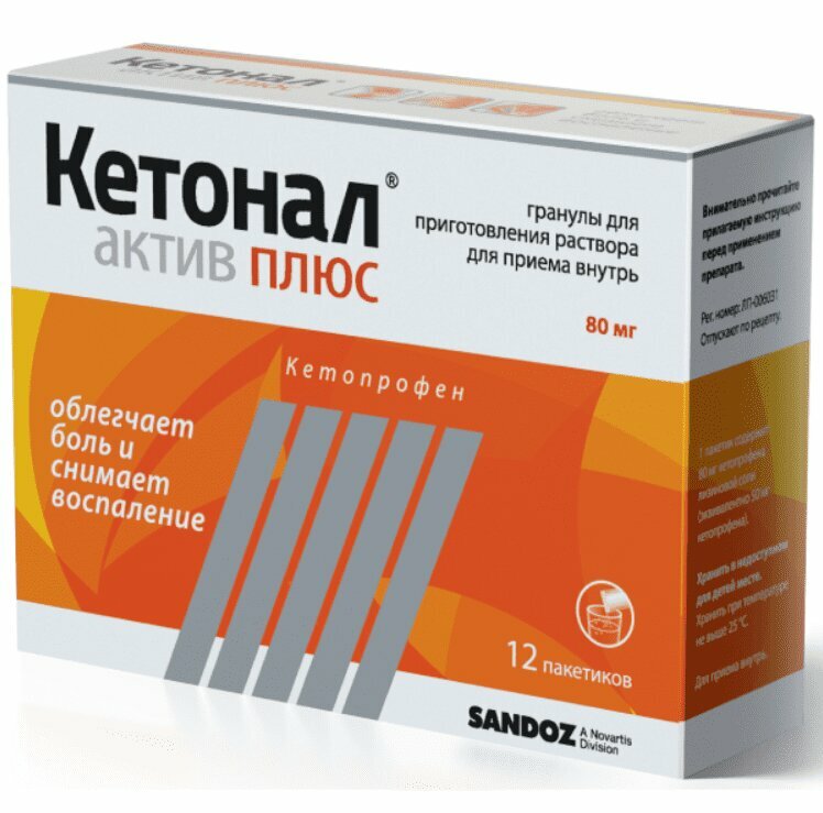 На 1 пакетик: действующее вещество - кетопрофена лизиновая соль 80 мг, что соответствует содержанию кетопрофена 50 мг; Вспомогательные вещества: маннитол - 1822 мг, повидон К30 - 40 мг, ароматизатор мятный - 20 мг, натрия хлорид - 20 мг, натрия сахаринат - 15 мг, кремния диоксид коллоидный - 3 мг.