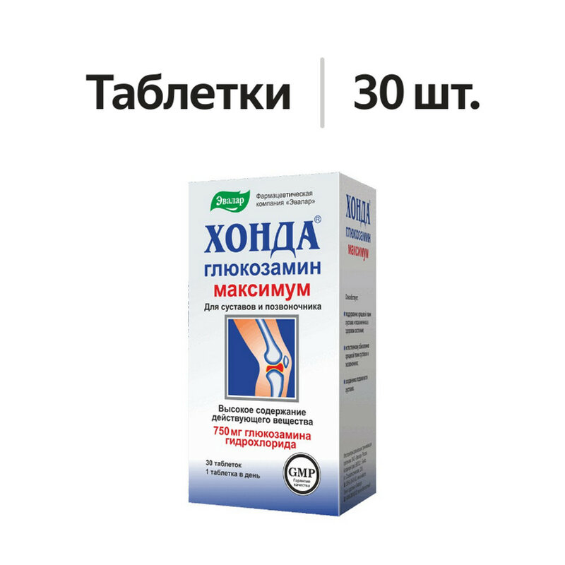 1 таблетка (суточный прием) содержит: активные компоненты - глюкозамина гидрохлорид 750 мг. Вспомогательные компоненты: Витамин B6 2 мг , Витамин B2 1,8 мг, Витамин B12 2 мг , Фолиевая кислота 0,2 мг, ,целлюлоза, мальтодекстрин, кроскармеллоза натрия, поливинилпирролидон, кальция стеарат, стеариновая кислота,кремния диоксид, глицерин, полиэтиленгликоль.