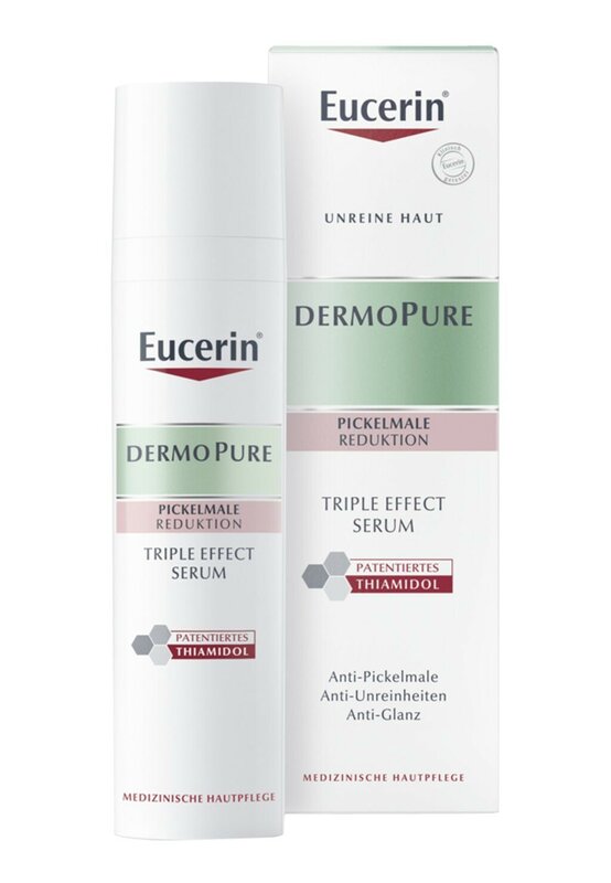 Сыворотка с тройным действием Eucerin DermoPure с запатентованным тиамидолом борется против трех основных проблем склонной к появлению несовершенств кожи благодаря ключевым ингредиентам: