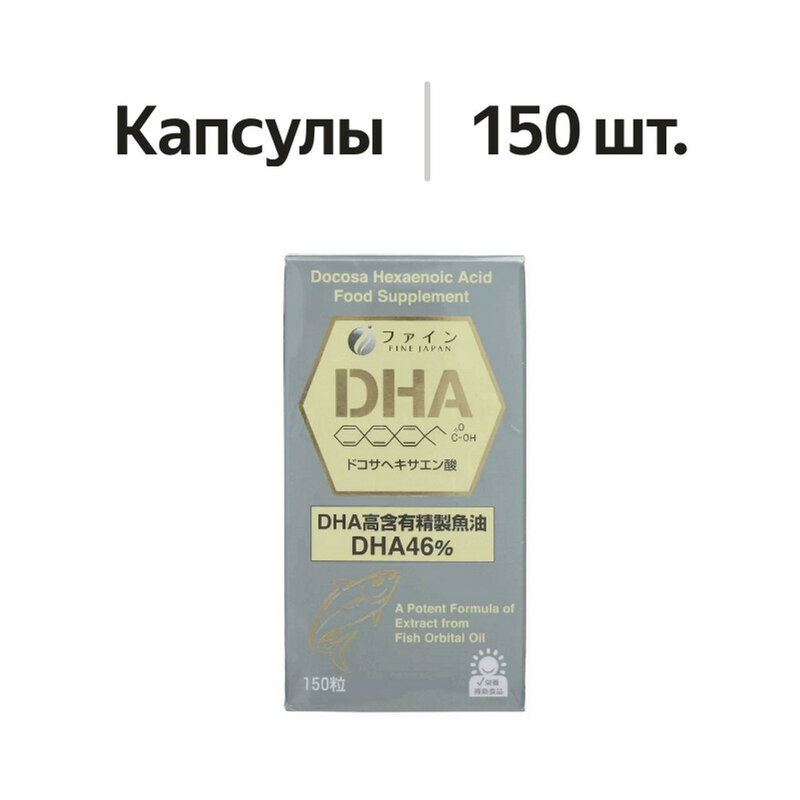 DHA (докозагексаеновая кислота) способствует сохранению и восстановлению эластичности сосудов, улучшает мозговое и периферическое кровообращение и необходима для нормального развития и функционирования мозга. Так же она повышает выносливость глаз и является важным источником энергии для организма. Эта добавка - незаменимая жировая кислота, которая в больших количествах содержится в мозге. Способствует разжижению крови, тем самым, улучшая ее циркуляцию, эффективно стимулирует мозговые клетки, применяется для профилактики атеросклероза. Fine DHA изготовлен из пищевого рафинированного глазничного рыбьего жира (включая DHA и EPA) полученного из тунца и скумбрии. Также содержит натуральный витамин Е и масло моркови, предотвращающие DHA от окисления. Все вышеперечисленное необходимо как детям в период повышенных умственных нагрузок, так и людям среднего и старшего возраста. Докозагексановая кислота предотвращает развитие:атеросклероза, инфарктов, инсультов, аллергий, депрессий, хронических воспалений суставов и внутренних органов, старения кожи, включая фотостарение, гиперактивности и связанной с ней низкой обучаемости у детей, болезни Альцгеймера, маразма, улучшает мозговое кровообращение. Омега-3 жирные кислоты, которые входят в состав препарата, часто используются для снижения уровня холестерина, уменьшения симптомов артрита, снижения риска дегенерации макулы, лечения депрессии и других заболеваний. Мужчины, имеющие проблемы с репродуктивной системой организма также могут получить помощь от Омега-3 жирных кислот. Нехватка в рационе Омега-3 жирных кислот может привести к серьезным проблемам мочеполовой системы у мужчин и даже бесплодию.