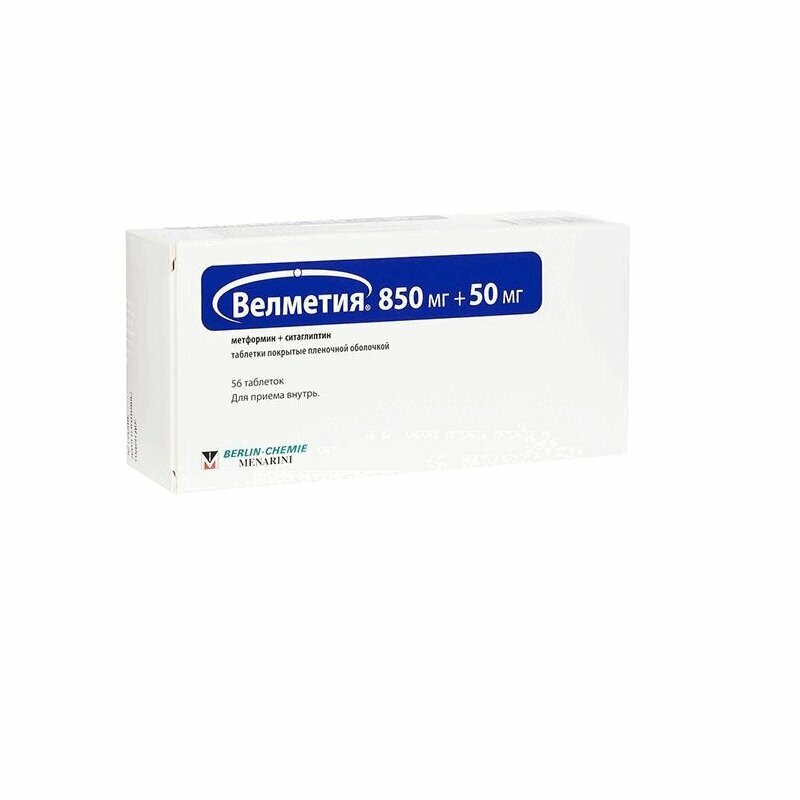 Действующие вещества: ситаглиптина фосфата моногидрат 64,25 мг (эквивалентно 50 мг ситаглиптина) и метформина гидрохлорид 850 мг. Вспомогательные вещества: целлюлоза микрокристаллическая 96,64 мг, повидон К-29/32 78,19 мг, натрия стеарилфумарат 22,34 мг, натрия лаурилсульфат 5,585 мг; оболочка таблетки Опадрай® II розовый, 85F94182 (27,93 мг) содержит: поливиниловый спирт 49.950%, титана диоксид (Е 171) 6,000%, макрогол 3350 (полиэтиленгликоль) 25.210%, тальк 18.470%, железа оксид черный (Е 172) 0.020%, железа оксид красный (Е 172) 0,350%.