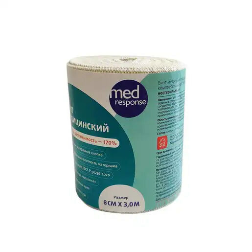 Бинт медицинский Medresponse эластичный компрессионный с застежкой высокой растяжимости 3 м х 8 см