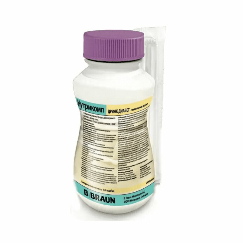 Нутрикомп Дринк Диабет - специализированный продукт для энтерального питания с подсластителями, ванильным вкусом.