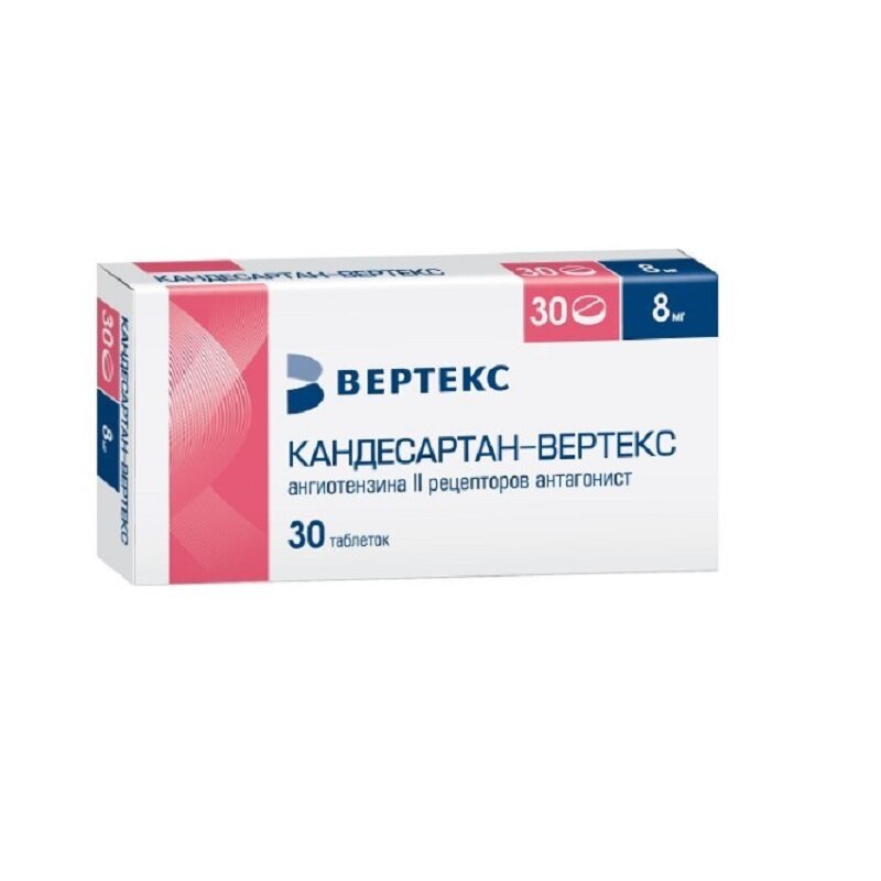 Побочные эффекты в ходе клинических исследований носили умеренный и преходящий характер и были сопоставимы по частоте с группой плацебо. Общая частота возникновения побочных эффектов на фоне приема кандесартана не зависела от дозы препарата, пола и возраста пациента. Частота случаев прекращения терапии в связи с побочными эффектами была сходной при применении кандесартана цилексетила (3,1 %) и плацебо (3,2 %). В ходе объединенного анализа данных проведенных исследований сообщалось о следующих побочных эффектах, часто (>1/100) встречавшихся на фоне приема кандесартана цилексетила. Описанные побочные эффекты наблюдались с частотой хотя бы на 1 % больше, чем в группе плацебо. По этому определению наиболее часто отмечали головокружение/вертиго, головную боль и респираторные инфекции. В таблице ниже представлены побочные эффекты, отмеченные в клинических исследованиях и при пострегистрационном применении. Частота возникновения побочных реакций в таблицах раздела представлена в следующей градации: очень часто (?1/10), часто (?1/100, ?1/10), нечасто (?1/1000, <1/100), редко (?1/10000, <1/1000) и очень редко (<1/10000). Класс системы органов Частота Нежелательная реакция Инфекционные и паразитарные заболевания Часто Респираторные инфекции Нарушения со стороны крови и лимфатической системы Очень редко Лейкопения, нейтропения и агранулоцитоз Нарушения со стороны обмена веществ и питания Очень редко Гиперкалиемия, гипонатриемия Нарушения со стороны нервной системы Часто Головокружение/вертиго, головная боль Нарушения со стороны дыхательной системы, органов грудной клетки и средостения Очень редко Кашель Нарушения со стороны желудочно-кишечного тракта Очень редко Тошнота Нарушения со стороны печени и желчевыводящих путей Очень редко Повышение активности «печеночных» ферментов, нарушение функции печени или гепатит Нарушения со стороны кожи и подкожных тканей Очень редко Ангионевротический отек, кожная сыпь, крапивница, кожный зуд Нарушения со стороны скелетно-мышечной и соединительной ткани Часто Боль в спине Очень редко Артралгия, миалгия Нарушения со стороны почек и мочевыводящих путей Очень редко Нарушение функции почек, включая почечную недостаточность у предрасположенных пациентов (см. раздел «Особые указания») Общие расстройства и нарушения в месте введения Часто Слабость Лабораторные показатели: в целом, при применении кандесартана не было отмечено клинически значимых изменений стандартных лабораторных показателей. Как и при применении других средств, влияющих или действующих на ренин-ангиотензин-альдостероновую систему, может наблюдаться небольшое снижение гемоглобина. Наблюдалось увеличение концентрации креатинина и мочевины, увеличение содержания калия и уменьшение содержания натрия. Повышение активности аланинаминотрансферазы (АЛТ) было отмечено несколько чаще при применении кандесартана в сравнении с плацебо (1,3 % против 0,5 %). При применении кандесартана обычно не требуется регулярного контроля лабораторных показателей. Однако у пациентов с нарушением функции почек рекомендуется периодически контролировать содержание калия и концентрацию креатинина в сыворотке крови. Хроническая сердечная недостаточность Побочные эффекты, выявленные на фоне применения кандесартана у пациентов с хронической сердечной недостаточност