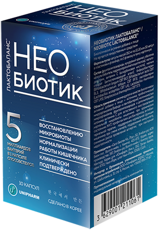 Необиотик Лактобаланс - сбалансированная комбинация пробиотических микроорганизмов (бифидо- и лактобактерий), молочнокислых бактерий, пребиотиков для восстановления нормальной микробиоты кишечника, повышения защитной функции иммунной системы и общей резистентности организма человека, усвоения полезных веществ и синтеза важных витаминов и аминокислот.