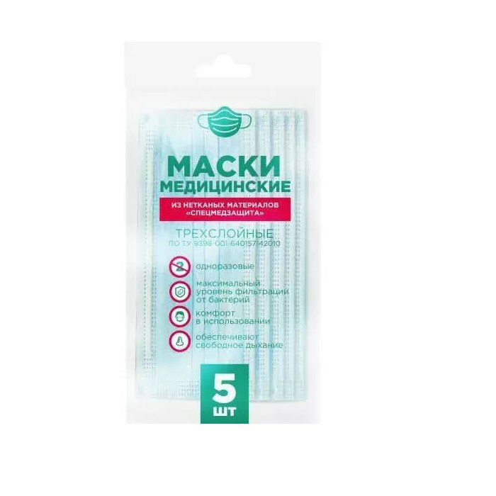 Маска медицинская на резинке 3-х слойная 5 шт.