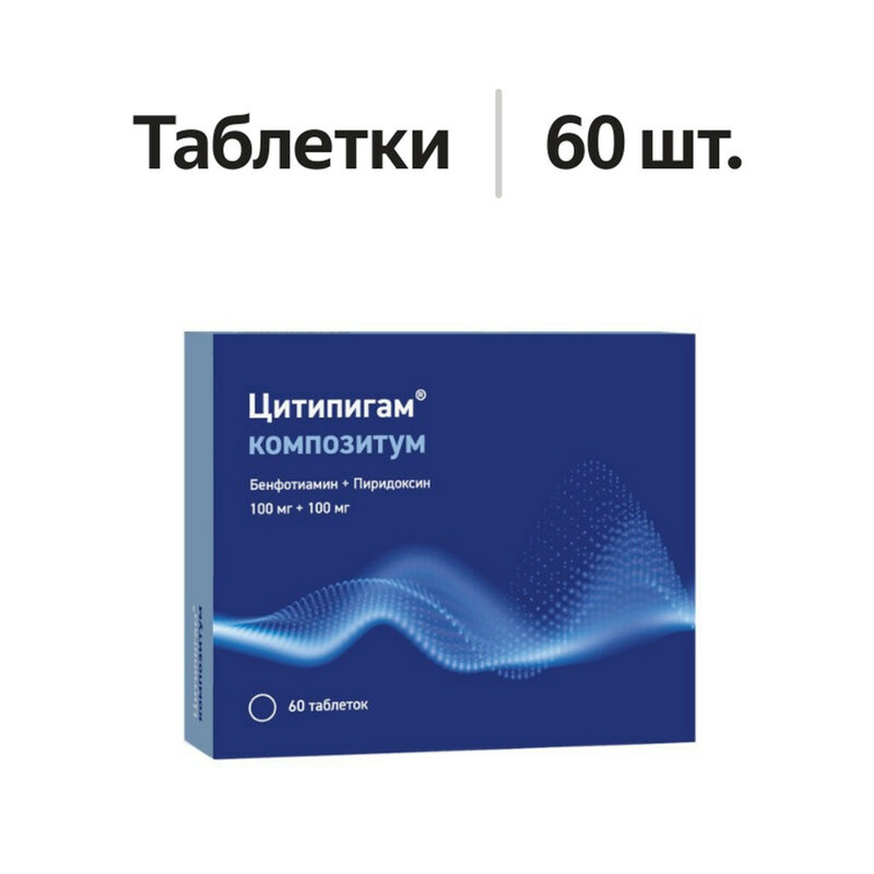 1 таблетка содержит: действующие вещества: бенфотиамин – 100 мг, пиридоксина гидрохлорид – 100 мг. Вспомогательные вещества: целлюлоза микрокристаллическая 101 – 134.5 мг, целлюлоза микрокристаллическая 102 – 90 мг, повидон-К25 – 8 мг, кремния диоксид коллоидный – 7 мг, тальк – 5 мг, кармеллоза натрия – 3 мг, кальция стеарат - 2.5 мг. Оболочка: поливиниловый спирт – 7.5 мг, макрогол-4000 – 3.7 мг, титана диоксид – 2.8 мг.