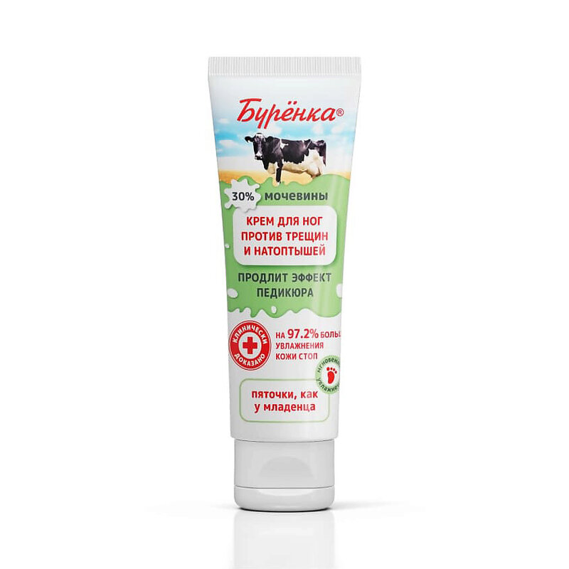 Высокоэффективный Крем от Буренка разработан для всех типов, сухой и очень сухой кожи рук, ног, стоп и пяточек. Крем для ног от трещин и сухости размягчает ороговевшие участки кожи, устраняет трещины, мозоли и натоптыши. Мочевина 30% интенсивно и глубоко увлажняет, регенерирует и смягчает кожу, восстанавливает эпидермально-липидный барьер. Предназначен для профилактики гиперкератоза. Увлажняющий аквапилинг предотвращает огрубелости пяток и сухость ног, предотвращает появление трещин и обеспечивает эффективное восстановление кожи. Крем содержит масла для педикюра и кутикулы, которые смягчают и питают кожу. Крем воск от трещин отлично заполняет неровности и трещинки, создавая наилучшую среду для естественной регенерации. Оживляет и восстанавливает усталую кожу. Пантенол - устраняет сухость, придает коже гладкость. Косметика подойдет в качестве ухода для рук. Средство для пяток можно использовать в качестве основы домашнего ухода и как уход за кожей. Крем ультра увлажняющий обладает лёгкой текстурой, имеет приятный ненавязчивый аромат, быстро впитывается. Каждой девушке, женщине понравится результат от применения: гладкие ножки и пяточки, состояние которых можно описать двумя словами - красота и здоровье. КЛИНИЧЕСКИ ДОКАЗАНО: показатель увлажнения кожи увеличивается на 97,2% и сохраняется на 20% дольше. Показания к применению: Для ороговевших участков кожи, трещин, мозолей и натоптышей. Крем подойдет как женщинам так и мужчинам. Консистенция, цвет и аромат: белая масса с лимонно-мятным ароматом. Крем воск от трещин для очень сухой кожи выпускается в тубе большого объема 100мл. В такой упаковке он станет роскошным презентом, который можно преподнести сестре, бабушке и дедушке, даже коллеге.