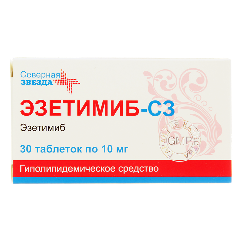 Повышенная чувствительность к любому из компонентов препарата; пациентам с умеренной и тяжелой степенью печеночной недостаточности (7-9 и более баллов по шкале Чайлд-Пью); детский возраст до 6 лет; непереносимость лактозы, дефицит лактазы или глюкозо-галактозная мальабсорбция. При назначении препарата Эзетимиб-СЗ одновременно со статином или фенофибратом необходимо следовать инструкции по применению дополнительно назначенных препаратов. С осторожностью. Следует соблюдать осторожность при одновременном применении препарата Эзетимиб-СЗ с фибратами, циклоспорином и непрямыми антикоагулянтами (включая варфарин и флуиндион). Пациенты, одновременно принимающие препарат Эзетимиб-СЗ и фенофибрат, должны знать о возможном риске развития заболеваний желчного пузыря. Применение при беременности и кормлении грудью Исследования на животных с введением эзетимиба не выявили прямых и опосредованных неблагоприятных эффектов в отношении беременности, развития эмбриона/плода, родов и постнатального развития. При введении беременным крысам эзетимиба в комбинации с ловастатином, симвастатином, правастатином или аторвастатином тератогенных эффектов не наблюдаюсь. При введении беременным крольчихам с небольшой частотой наблюдались дефекты развития скелета у плода. Клинических данных по применению препарата Эзетимиб-СЗ при беременности нет, поэтому следует соблюдать осторожность при назначении препарата беременным женщинам. В случае наступления беременности прием препарата Эзетимиб-СЗ должен быть прекращен. При одновременном применении препарата Эзетимиб-СЗ и статина необходимо следовать инструкции по применению данного статина. В исследованиях на крысах было выявлено, что эзетимиб выделяется с молоком. Данных о выделении эзетимиба с грудным молоком у женщин нет. В связи с этим препарат Эзетимиб-СЗ не рекомендуется применять в период грудного вскармливания, в случае если потенциальная польза не превышает потенциальный риск для ребенка. Если применение препарата необходимо, пациентка должна прекратить кормление грудью. Применение при нарушениях функции печени. Противопоказано применение препарата пациентам с умеренной и тяжелой степенью печеночной недостаточности. Для пациентов с легкой степенью печеночной недостаточности подбор дозы препарата не требуется. Применение при нарушениях функции почек. При проведении монотерапии препаратом для пациентов с нарушением функции почек подбор дозы препарата не требуется. При проведении комбинированной терапии с симвастатином для пациентов с легкой степенью нарушения функции почек (СКФ не менее 60 мл/мин/1.73 м2) подбор дозы препарата Эзетимиб-СЗ или симвастатина не требуется. Пациентам с нарушением функции почек и СКФ менее 60 мл/мин/1.73 м2 препарат Эзетимиб-СЗ назначают в дозе 10 мг и симвастатин в дозе 20 мг 1 раз/сут вечером. Применение у детей. Противопоказано применение препарата в детском возрасте до 6 лет. Применение у пожилых пациентов. Для пациентов пожилого возраста подбор дозы препарата не требуется.