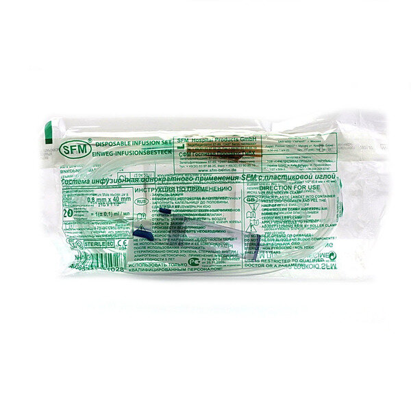 Иглы для прокалывания пробок (металлические и пластиковые) изготовлены по технологии "острие типа карандаш", что позволяет уменьшить риск фрагментации пробки и вероятность нарушения проходимости иглы. Воздухозаборная игла (или воздухозаборный клапан резервуара системы) снабжена водонепроницаемой мембраной для очистки воздуха. Мембрана произведена из стекловолокна, процент очистки воздуха составляет 95% (стандарт - не менее 90%), что снижает риск нарушения стерильности вводимого раствора. Стерильная инфузионная система снабжена нейлоновым жидкостным микрофильтром с минимально возможным диаметром ячейки 15 мкм, что позволяет провести надежную очистку раствора от примесей без уменьшения скорости потока раствора и предотвратить нарушение микроциркуляции в капиллярах легких при попадании микрочастиц стекла, резины и т.д.). (скорость потока 1520 мл/10 мин при стандарте 1000мл/10 мин). Система инфузионная для вливания растворов комплектуется соединениями Luer и Luer-Lock, адаптировано к инъекционным иглам, периферическим и центральным венозным катетерам. Роликовый регулятор плавно изменяет скорость инфузии: 20 капель = 1 мл. Прозрачные соединительные трубки позволяют контролировать качество и состояние вводимого раствора. Латексный или безлатексный инъекционный узел обеспечивает возможность проведения болюсных инъекций. Инъекционная игла 21G (0,8 x 40 мм) с атравматичной заточкой обеспечивает безболезненную венепункцию.