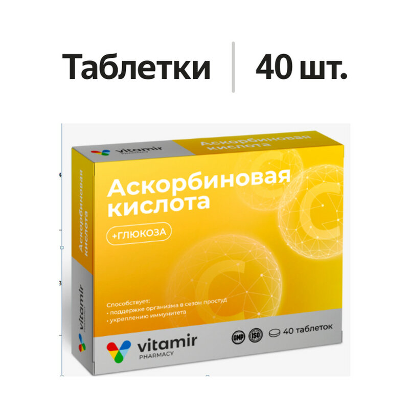глюкоза, аскорбиновая кислота, крахмал картофельный, кальциевая соль стеариновой кислоты (агент антислеживающий)