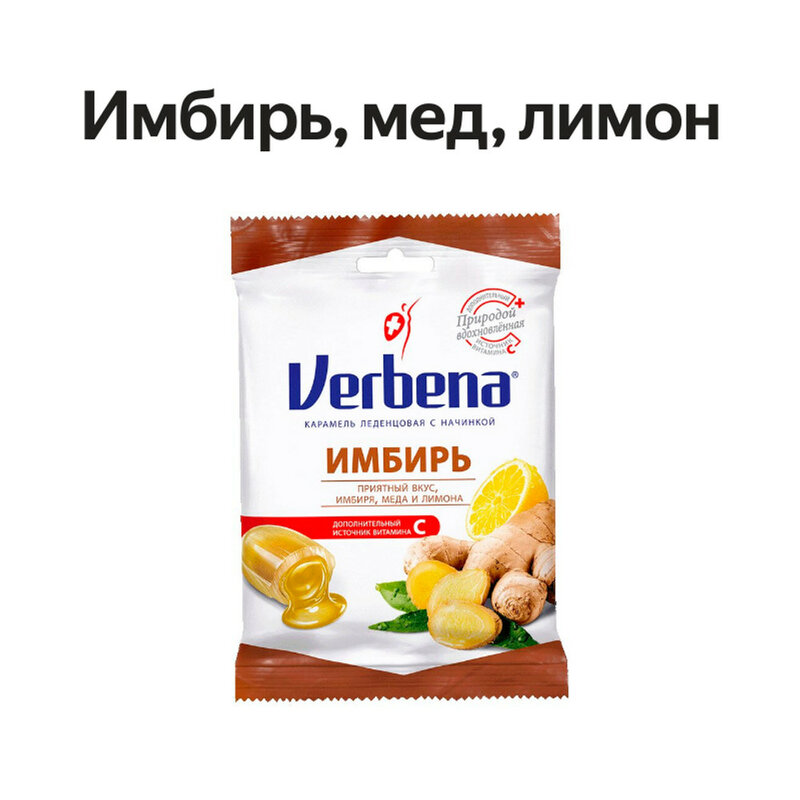 Карамель леденцовая Verbena Имбирь с начинкой 60 г