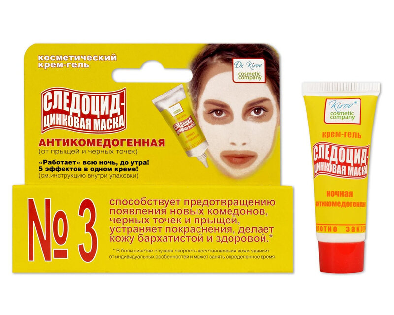 Следоцид - Цинковая Маска, устраняя покраснения, избавляет кожу от угрей и прыщей. Кожа становится бархатистой и здоровой. Главный принцип действия цинковой маски - старые прыщи в течение ночи «засыхают», а новые не появляются или появляются в значительно меньших количествах.