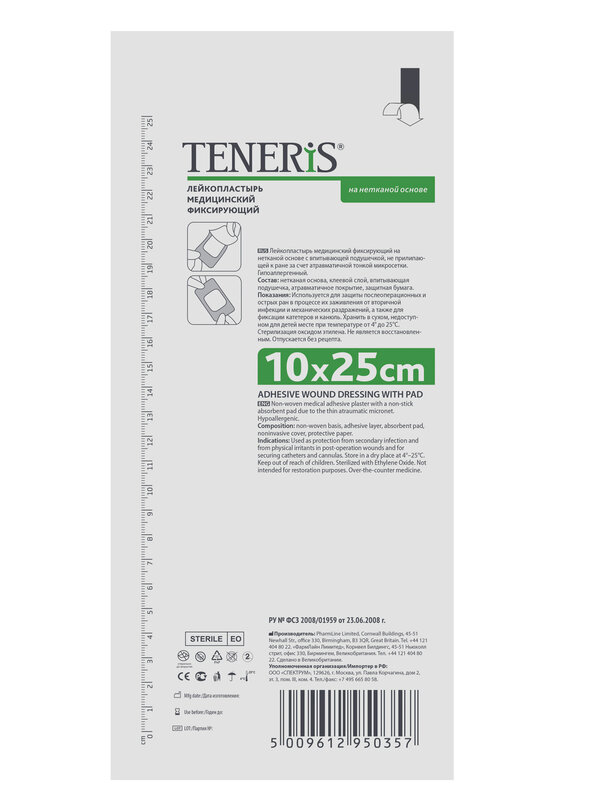Лейкопластырь Teneris медицинский фиксирующий на нетканой основе - повязка пластырного типа медицинская фиксирующая, стерильная.