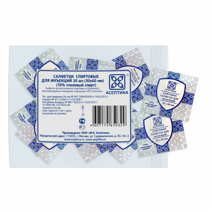 Салфетка Асептика спиртовая 30х60 мм 20 шт.