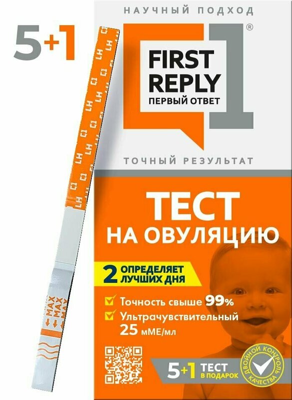 Тест для определения времени овуляции First Reply Первый ответ представляет собой иммунохроматографический экспресс-тест, определяющий человеческий лютеинизирующий гормон (LH) в образцах мочи. Этот тест позволяет быстро и легко определить время наступления овуляции.