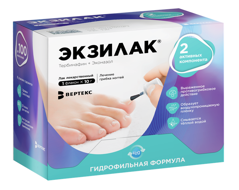 При необходимости, возможно нанесение декоративного лака для ногтей через 10-15 минут после нанесения лака Экзилак®.