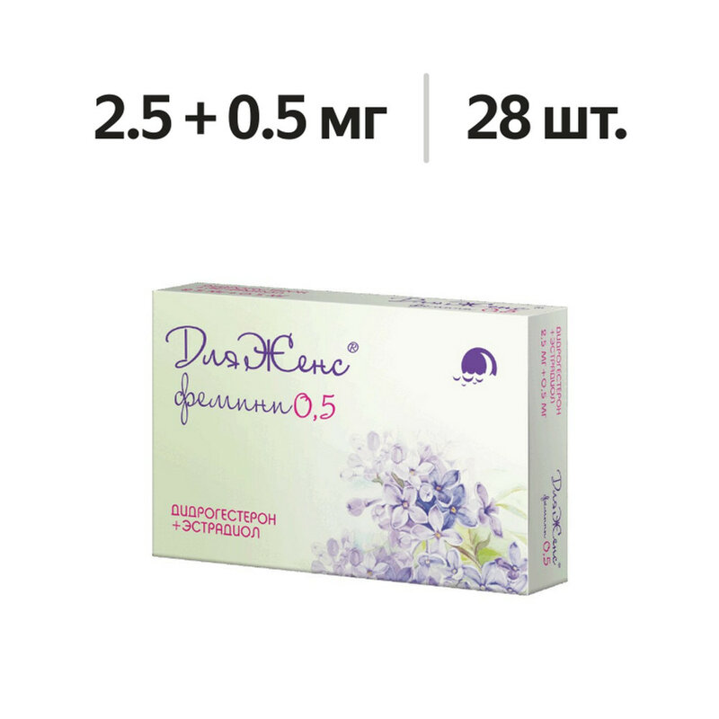 Препарат ДляЖенс фемини относится к фармацевтической группе под названием «половые гормоны и модуляторы половой системы; гестагены в комбинации с эстрогенами; гестагены и эстрогены, фиксированные комбинации» и содержит 2 действующих вещества, относящихся к синтетическим половым гормонам: прогестаген дидрогестерон и эстроген эстрадиол. Эстрадиол в составе препарата по составу и своему действию подобен естественному женскому гормону, вырабатываемому яичниками. Он восполняет дефицит эстрогенов в организме женщины в периоде постменопаузы и купирует климактерические симптомы в течение первых недель после начала приема. Дидрогестерон проявляет эффективность при приеме внутрь и обладает активностью, схожей с другим естественным гормоном, который также вырабатывается яичниками – прогестероном. Применение дидрогестерона при проведении менопаузальной гормональной терапии (МГТ) снижает риск развития разрастания слизистой оболочки матки (гиперплазии эндометрия) на фоне приема эстрогена.