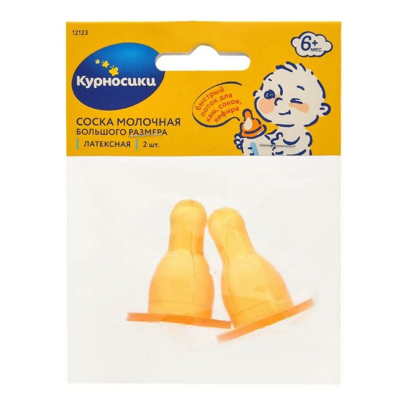 Латексная соска большого размера «Курносики» разработана с учетом возраста и физиологических особенностей младенцев от 6 месяцев. Преимущества: Соска изготовлена из латекса – природного, натурального материала на основе каучука. Х-образное отверстие оптимально для густого питания – кисломолочных продуктов, каш, соков. Соска классической формы всегда занимает правильное положение во рту ребенка. Соску разрешено стерилизовать различными способами.