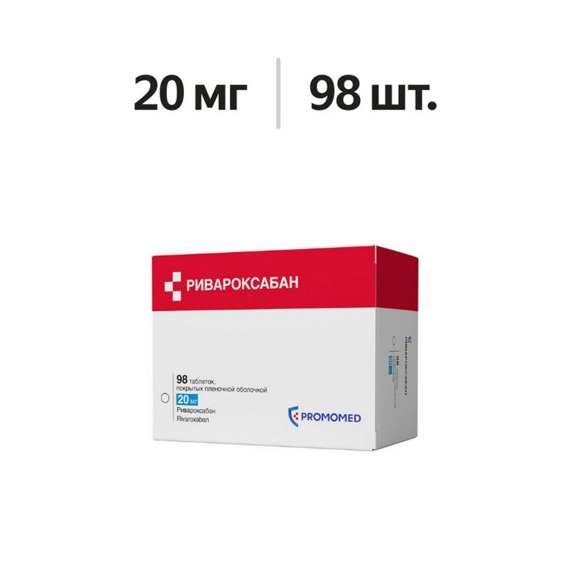 Каждая таблетка, покрытая пленочной оболочкой, содержит 20 мг ривароксабана.