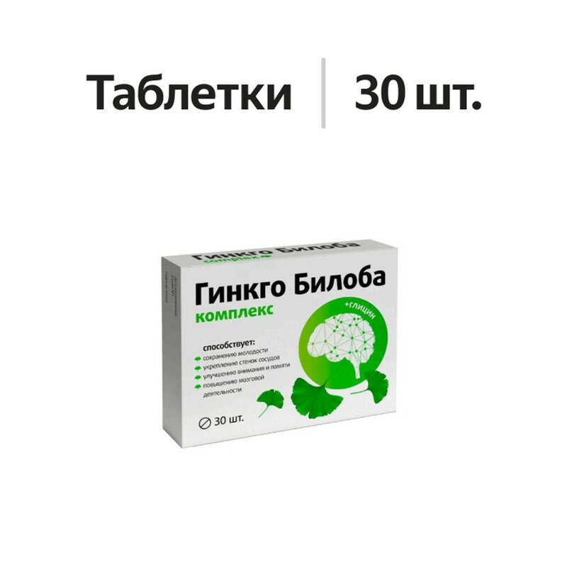 Гинкго билоба содержит богатый комплекс биологически активных веществ - органические кислоты, полисахариды, растительные жиры, эфирные масла, аминокислоты, макроэлементы. В листьях гинкго содержатся вещества, которые способствуют нормализации капиллярного кровотока, что способствует улучшению общего состояния чело века. Прием экстракта гинкго билоба положительно влияет на процессы восстановления эластичности и прочности сосудов. Экстракт гинкго способствует улучшению кровообращения в головном мозге, в результате этого оптимизируются процессы доставки кислорода к его клеткам и тканям, улучшается их питание. Также прием гинкго благотворно влияет на нормализацию вязкости крови, препятствует образованию тромбов. Активный антиоксидантный комплекс, содержащийся в экстракте гинкго билоба, помогает защищать оболочки нервных клеток от разрушения свободными радикалами. Гинкго билоба способствует усилению концентрации внимания, снижению рассеянности, а также уменьшению чувства усталости. Глицин - одна из самых простых аминокислот, необходимых для построения белков. Кроме того, глицин является регулятором обмена веществ, благотворно влияет на нормализацию сна и облегчение засыпания, уменьшает психоэмоциональное напряжение, повышает умственную работоспособность. Дополнительный прием глицина способствует уменьшению токсического действия чужеродных для организма химических веществ, алкоголя.
