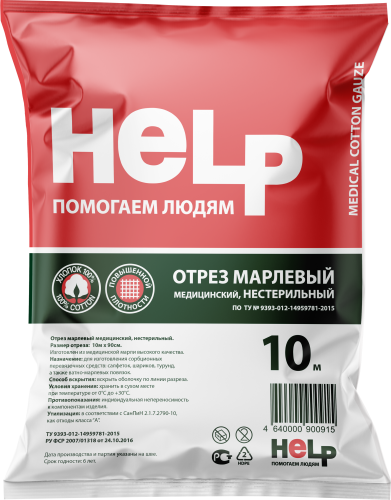Марля Help медицинская нестерильная повышенной плотности 10 м х 90 см