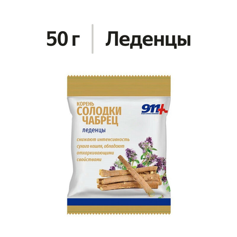 911+ Ваша служба спасения Корень солодки-чабрец с витамином С леденцы 50 г
