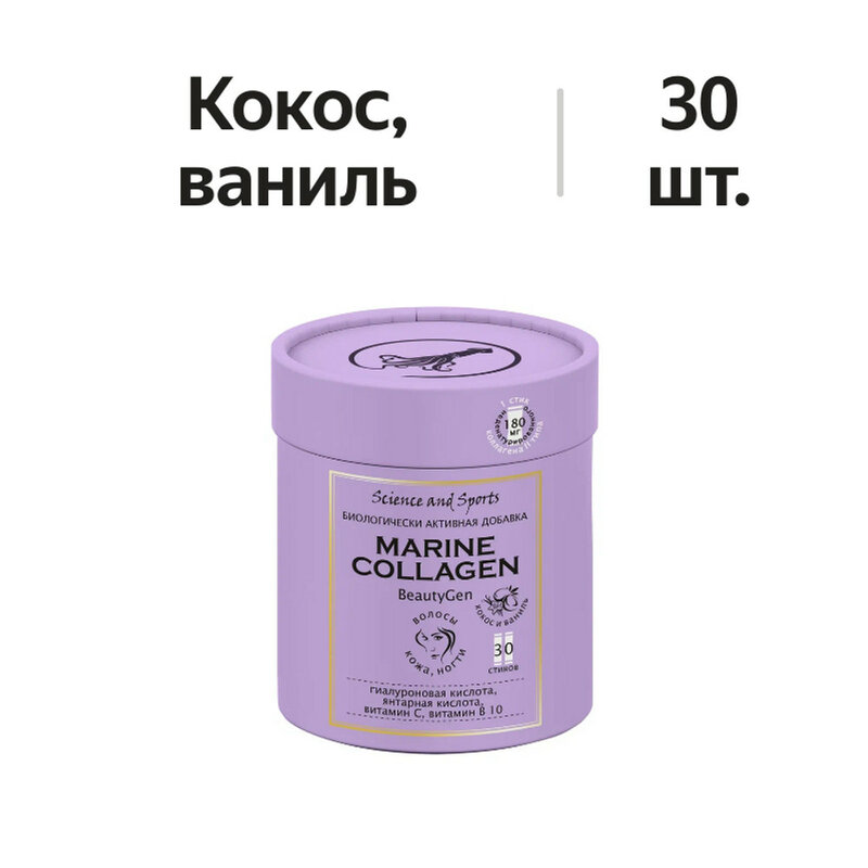 Морской коллаген «Наука и Спорт» (SCIENCE & SPORTS), экстрагированный из гигантского морского кальмара, сохраняет исходную тройную структуру и в то же время хорошо растворяется и является особенно ценным, так как он легко усваивается нашим организмом. Коллаген морской в виде порошка часто используется как добавка для поддержания здоровых суставов , кожи , лица , волос и ногтей . Для тех, кто страдает от болей в суставах или имеет проблемы с кожей, коллаген порошок может быть очень полезным. Он помогает укрепить и восстановить соединительные ткани в организме, что помогает уменьшить боль и улучшить качество кожи, волос и ногтей. Эта пищевая добавка рекомендуется как для женщин , так и для мужчин, коллаген сочетает в себе питание и красоту, является идеальным выбором для тех, кто хочет улучшить качество своей жизни и заботится о своем здоровье. Он может быть использован как дополнение к рациону, в спортивном питании и косметических средствах для укрепления суставов, связок, кожи, волос и ногтей. Коллаген в виде стика /саше — это удобный способ употребления коллагена, который обеспечивает точное дозирование. Он может быть добавлен в воду или другие напитки, чтобы получить питьевой коллаген. Это еще и удобный способ его применения в дороге или на работе. Рекомендация технологов производства употреблять коллаген с соком или морсом с содержанием Витамина С (например, апельсиновым) или просто выжать лимон, это не только усилит полезные свойства коллагена, но и избавит от морского запаха. Натуральный морской коллаген - уникальное вещество, аминокислотный состав которого максимально близок набору аминокислот в коллагене человека. Это первый в истории нативный коллаген, способный преобразовываться на поверхности кожи и проникать сквозь эпидермис, чтобы работать в глубинных слоях кожи как изнутри, так и поверхностно. Неденатурированный коллаген, ранее использовался только в медицине - как лекарство и, как БАД не присутствовал не рынке. Новейшая запатентованная формула, позволила выпустить данный продукт на рынок как биологически активную добавку.
