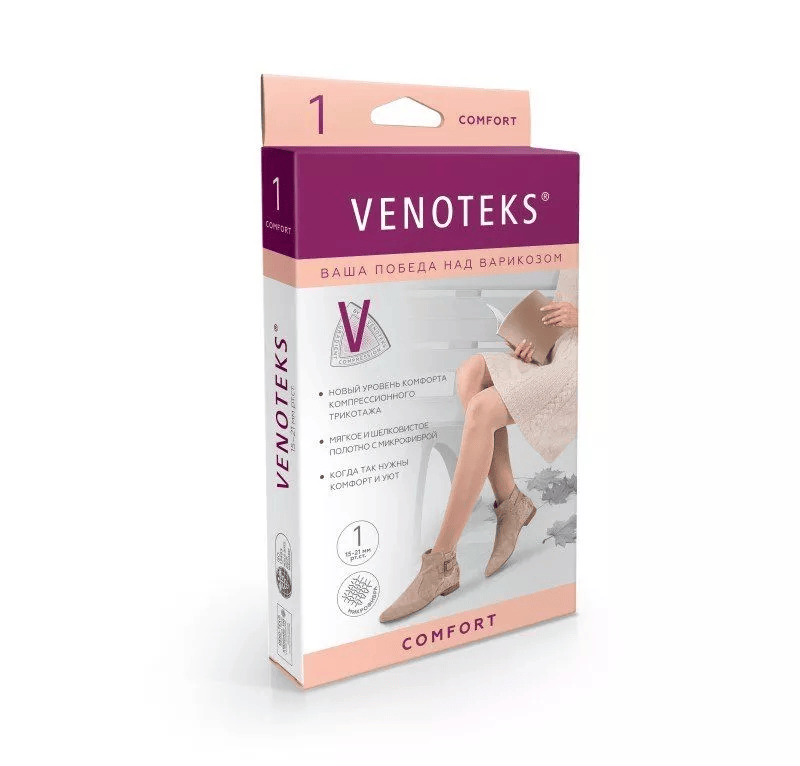 Компрессионные колготки VENOTEKS (1 класс, с микрофиброй) 1C302 уменьшают болевые ощущения, а также усталость и тяжесть в ногах. Они эффективно предотвращают развитие и прогрессирование заболеваний, а также снижают риск развития тромбоза вен.