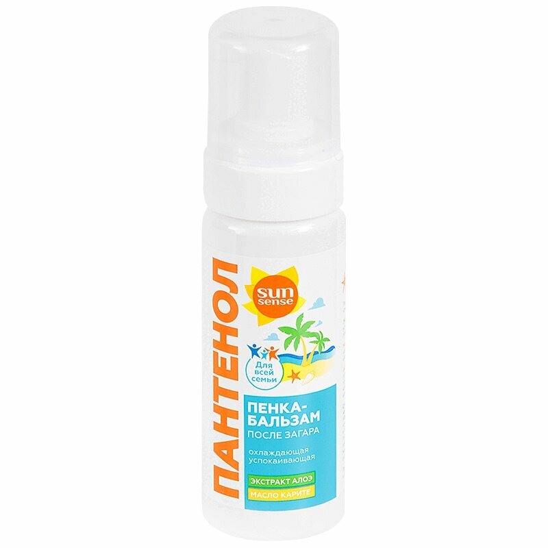 Сан Сенс Пантенол Пенка-бальзам после загара - эффективно увлажняет, смягчает и успокаивает кожу, устраняет сухость и шелушение, помогая быстро восстановить защитный барьер кожи. Активные компоненты: Гиалуроновая кислота способствует восстановлению и поддержанию оптимального водного баланса, регенерации эпидермиса. Пантенол 7% снимает раздражение, смягчает и увлажняет, успокаивает кожу после пребывания на солнце, устраняя покраснения, сухость и дискомфорт. Улучшает регенерацию тканей, помогает вернуть комфорт даже самой сухой коже лица и тела.