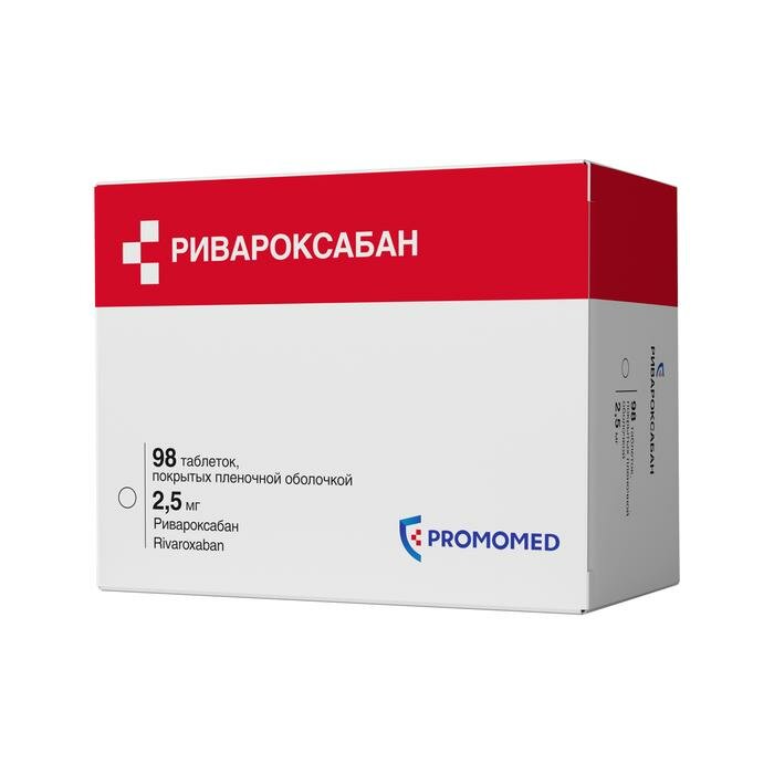 Каждая таблетка, покрытая пленочной оболочкой, содержит 2,5 мг ривароксабана.