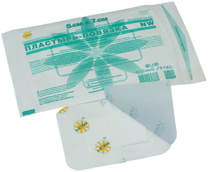 Лейкопластырь LEIKO (ЛЕЙКО) фиксирующий медицинский на нетканой основе, пластырь-повязка NW,