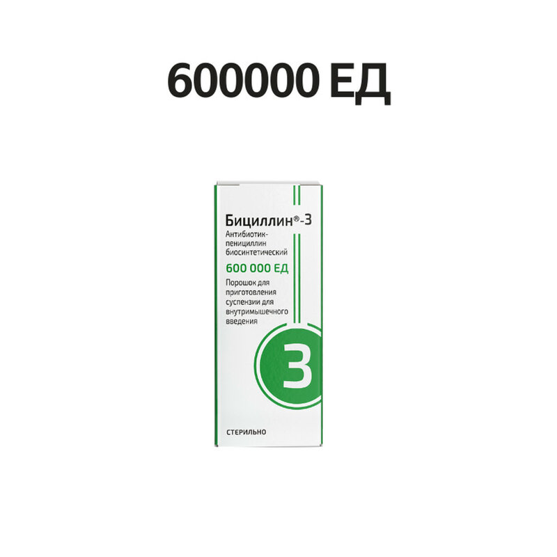 Бициллин-3 вводят глубоко в верхний наружный квадрант ягодицы в дозе не более 1.2 млн ЕД. При необходимости 2 инъекций их делают в разные ягодицы. Повторные инъекции проводят на 4 сут после предыдущей инъекции. Препарат в дозе 600 000 ЕД вводят 1 раз в 6 дней. При лечении первичного и вторичного сифилиса разовая доза препарата составляет 1.8 млн.ЕД. Курс лечения - 7 инъекций. Первая инъекция проводится в дозе 300 000 ЕД, вторая инъекция - через 1 сут в полной дозе (1.8 млн.ЕД). Последующие инъекции проводят 2 раза в неделю. При лечении вторичного рецидивного и скрытого раннего сифилиса для первой инъекции используется доза 300 000 ЕД, для последующих инъекции - 1.8 млн. ЕД. Инъекции проводят 2 раза в неделю. Курс лечения - 14 инъекций. Запрещается в/в введение препарата. Правила приготовления и введения раствора Суспензию Бициллина-3 готовят непосредственно перед употреблением. Во флакон с препаратом вводят 2-3 мл стерильной воды для инъекций или изотонического раствора натрия хлорида. Смесь во флаконе встряхивают в течение 30 сек (в направлении продольной оси) до образования гомогенной суспензии (или взвеси), которую вводят глубоко в/м в верхний наружный квадрант ягодицы. Растирание ягодицы после инъекции не рекомендуется.