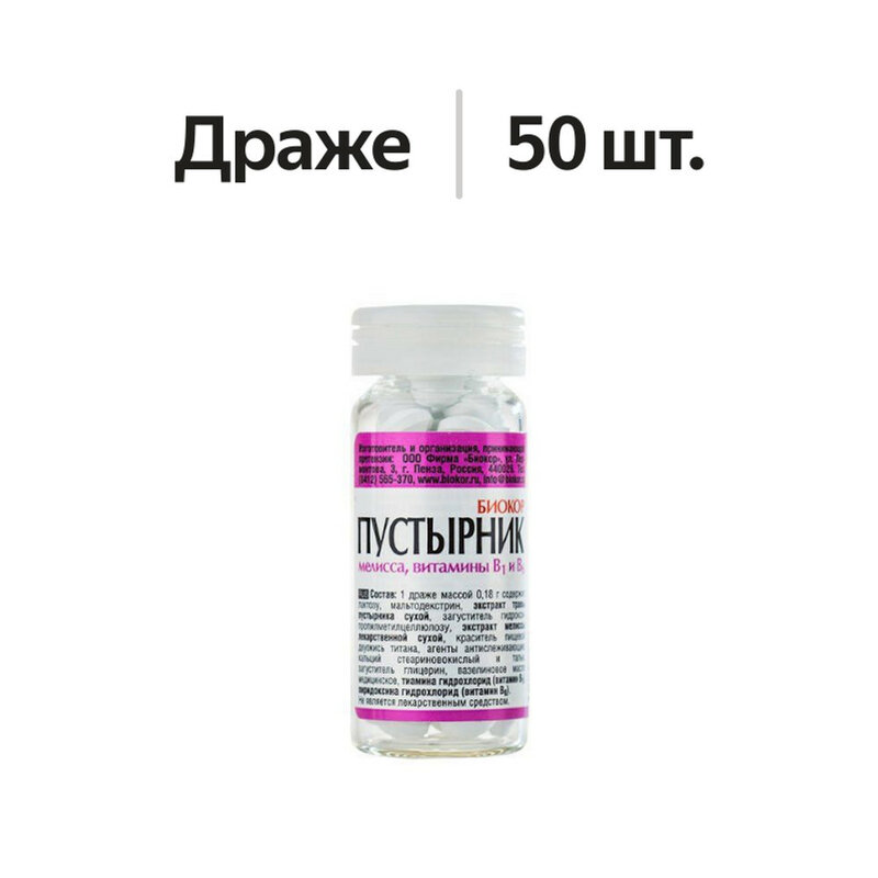 Входящий в состав драже экстракт пустырника успокаивает, улучшает настроение, снимает раздражительность и беспокойство. Экстракт мелиссы обладает спазмолитическим эффектом и усиливает действие пустырника. Дополнительно Пустырник Биокор обогащен витаминами В1 и В6, которые усиливают действие друг друга и положительно влияют на нервную, мышечную и сердечно-сосудистую системы.