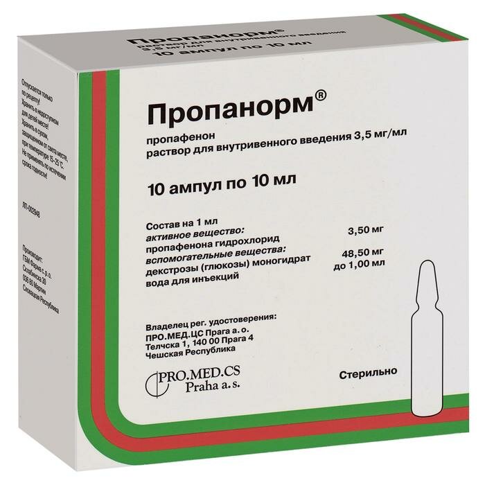 1 мл пропафенона гидрохлорид 3.5 мг.